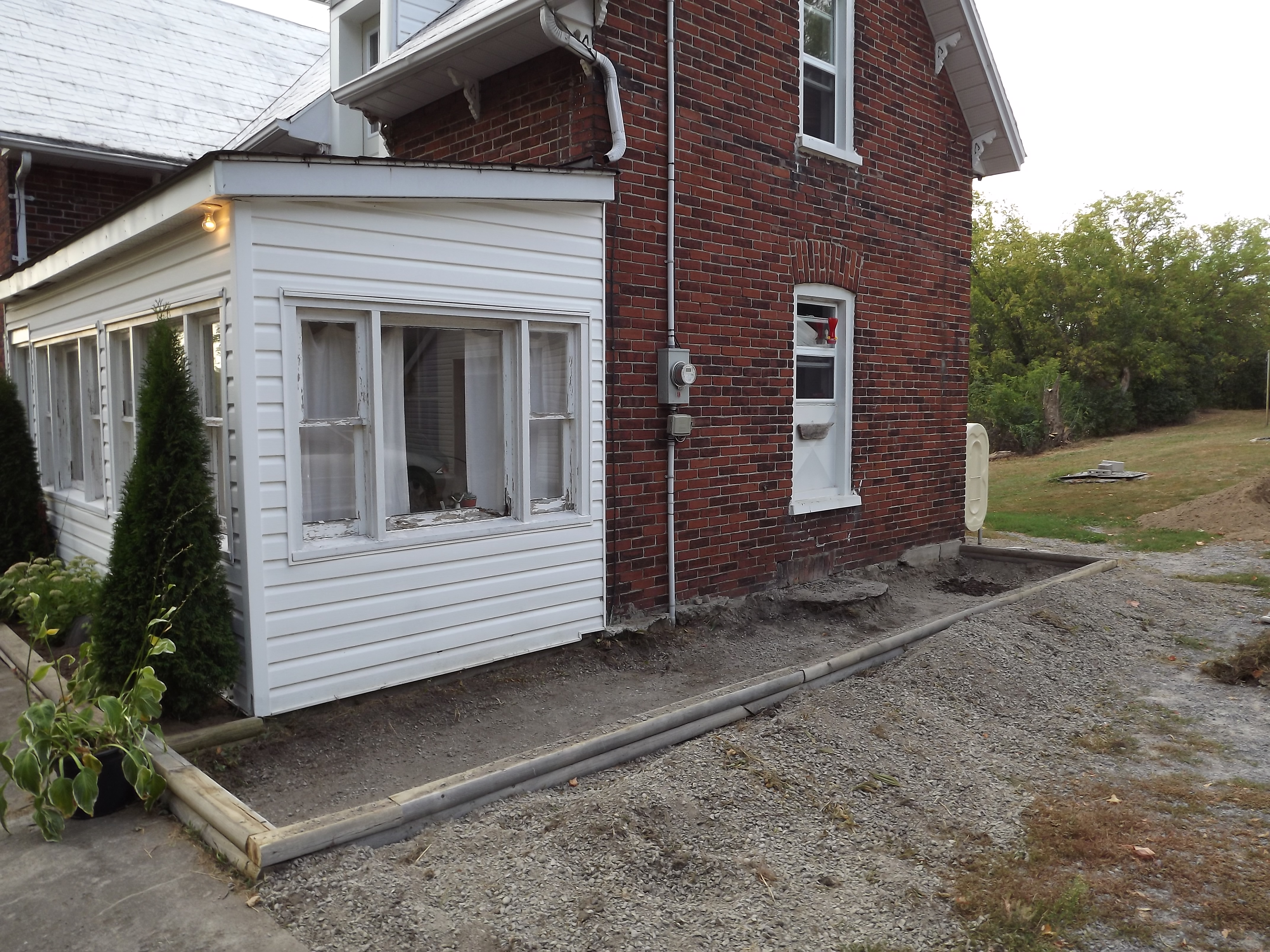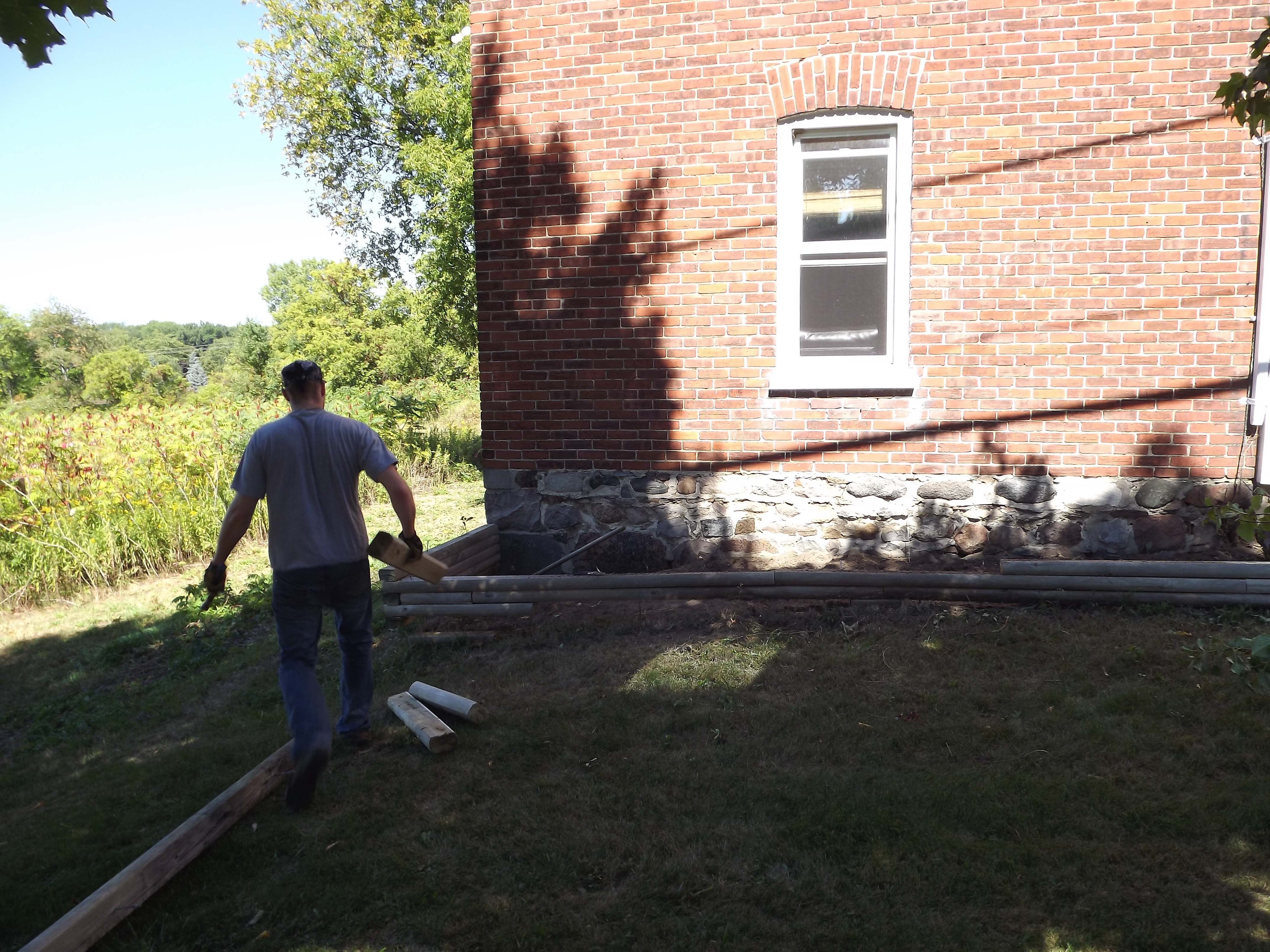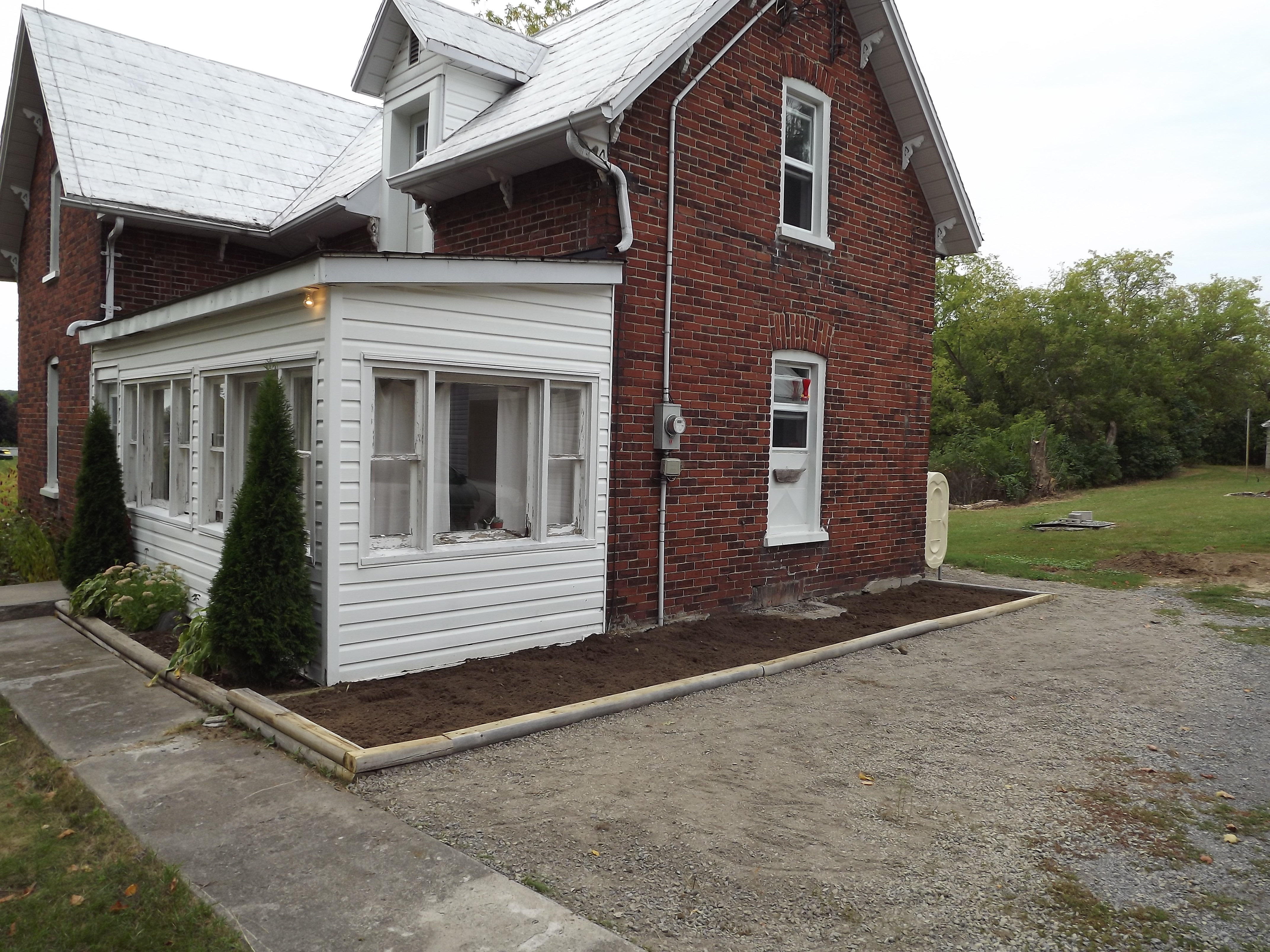 It took 2 hours to dig all the weeds out of that bed! Only one flower, a hydrangea, and a small lilac in the whole lot. After the garden was emptied that’s when we really noticed the rail ties were quite crooked…
