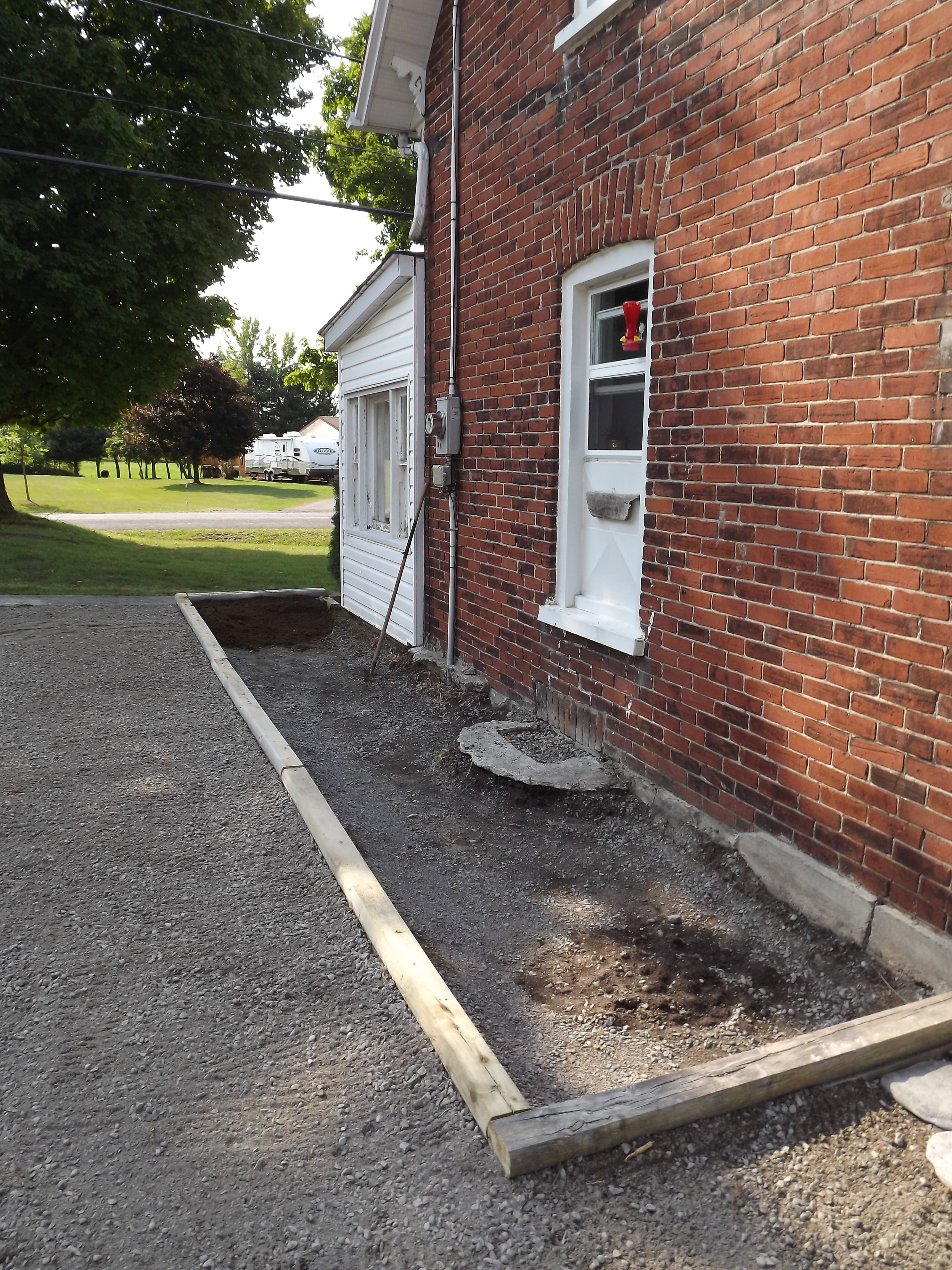 The hottest day of the year! Not sure what we were thinking really, digging in gravel no less, but one case of water and 4 hours later a garden had emerged. This one in particular I am very fond of as I measured, cut and nailed all the rail ties myself!