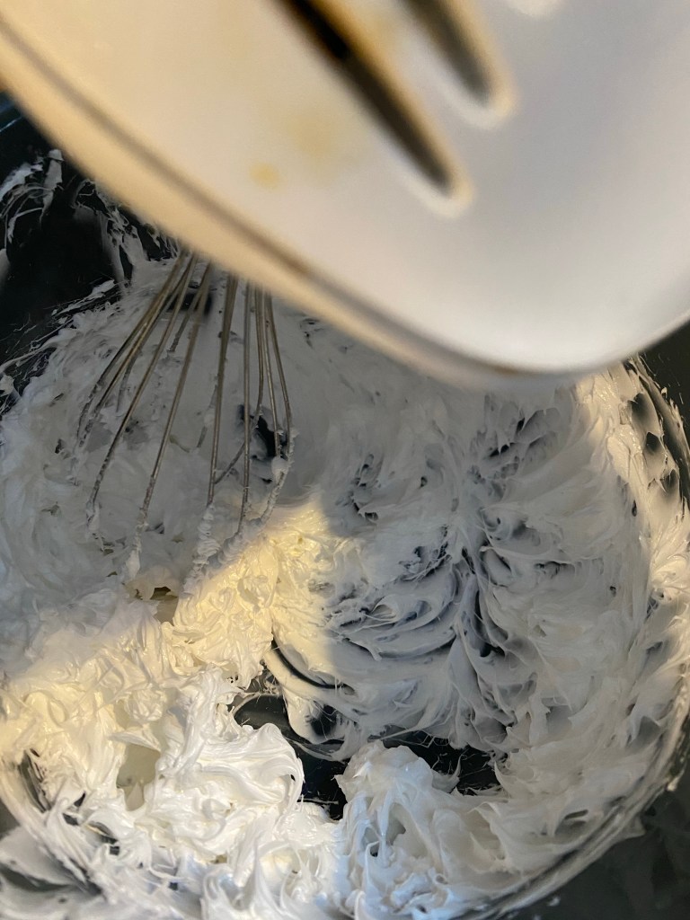- Use a hand mixer to whip ingredients for 10 – 15 mins until the desired consistency. (Mine whipped up nicely)